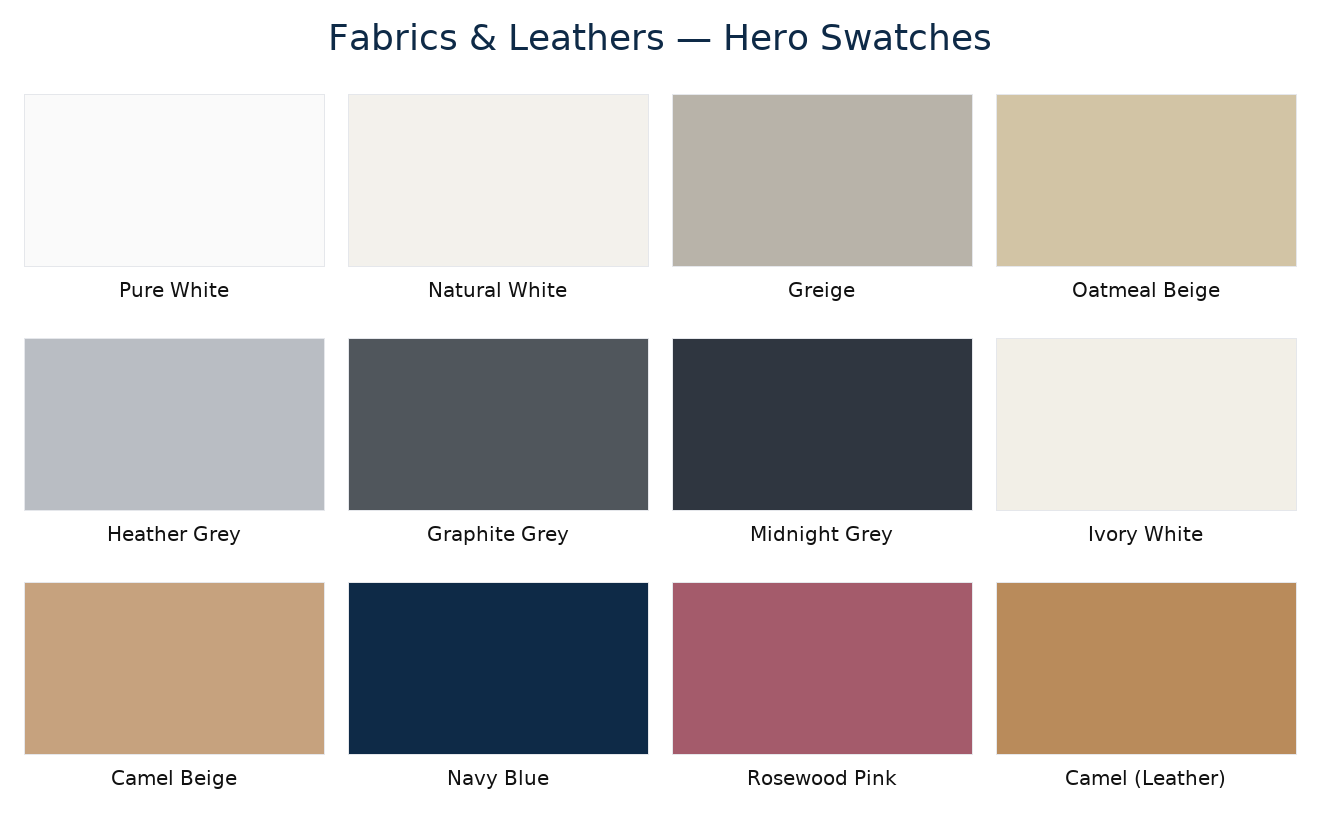 Choose from performance weaves, chenilles and velvet, and five leathers. Get 3 free swatches, or a $30 full kit with a $30 credit on your seating order.